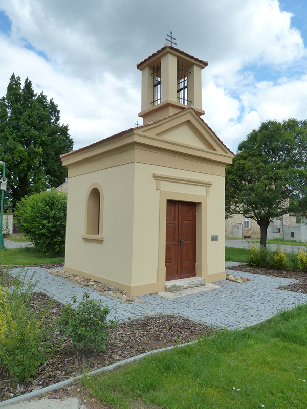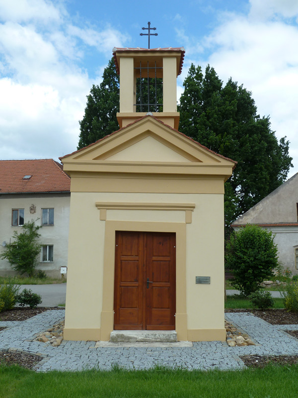 PopisNa návsi. - Klasicistní kaple obdélníkového půdorysu z poloviny 19. století. Na její jižní straně je obdélníkový vstupní portál, na bočních stěnách okna s půlkruhovými záklenky. Střecha kaple je valbová s tympanovým štítem, na ní zvonička, kde býval zavěšený zvon. - Zvon rekvírován ve 2. sv. válce, na původní místo se vrátil až ze skládky. - Průměr: 53,4 cm, výška 49,5 cm, hloubka 48 cm. - Na bocích zvonu je do hloubky provedené datování, připomínající zavěšení zvonu, a to 13. VII. 1947. Zavěšen je na železné hřídeli. Srdce je novodobé, svařované. - Při průzkumu v r. 1993 bylo však zjištěno, že se jedná o zvon mnohem starší. Vykazuje typické znaky zvonů ve tvaru homole cukru, tzv. Zuckerhutglocken. Tyto zvony pocházejí z konce 12. až počátku 14. stol. Patří tedy možná k nejstarším zavěšeným zvonům v Čechách. - Po povodních (2002) zvon dočasně umístěn na Obecním úřadě v Hoříně. V r. 2014 byla kaple v rámci revitalizace návsi zrekonstruována firmou Šikner. Zatím je stále bez zvonu (ověřeno červen 2015). - Vedle kapličky památník obětem válek.