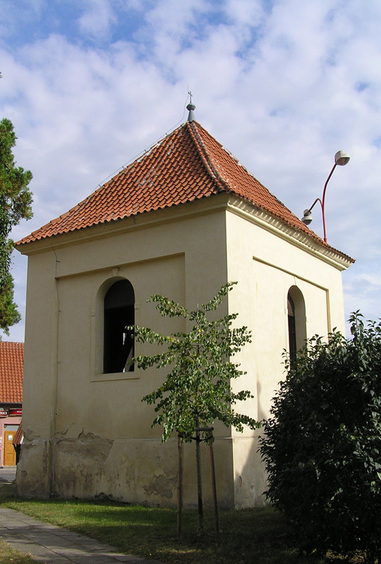 Vedle kostela Nanebevzetí Panny Marie. - Na místě původně dřevěné zvonice. Kamennou zvonici nechal postavit r. 1833 majitel JUDr. Jan Měchura, tchán Františka Palackého. Stavbu realizoval Jan Žischka z Lobkovic. - Hranolová zvonice s lizénovými rámci a polokruhově ukončenými okny. Původně zde byly tři zvony, nakonec zůstal jen jeden. - V r. 2000 zvonice rekonstruována.