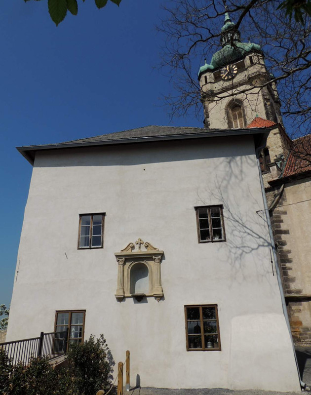 Dům v parku u chrámu sv. Petra a Pavla. Býval součástí opevnění města. Se zámkem ho spojovala dnes již neexistující jednoduchá hradební zeď, na její jižní nároží se připojuje příčná zeď se čtyřmi střílnami, která uzavírala prostor parkánu, obíhající město až k Labské bráně. - Nejprve zde sídlila kolegiátní kapitula, která existovala od 11. stol. do husitských válek při tamním kostele sv. Petra a Pavla. Poté byla sídlem městské partikulární latinské školy, jejímiž významnými učiteli byli, jak uvádí pamětní deska, Matouš Hosius Vysokomýtský (1576-1577), ale i Jan Civilius-Měšťánek Lomnický. Škola byla v tomto domě až do r. 1787, než přesídlila do dnešní Husovy ulice.