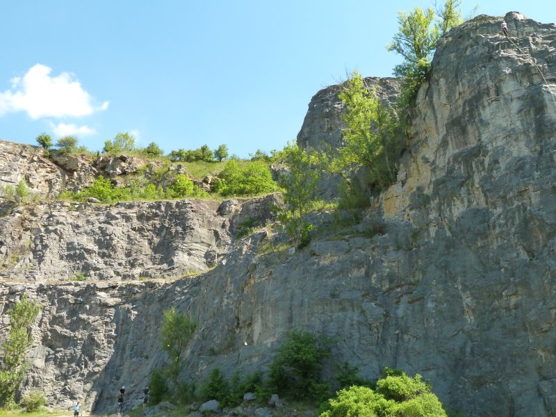 Bývalý vápencový lom Hostim I zvaný Alkazar v Národní přírodní rezervaci Karlštejn. Nachází se nad Berounkou nedaleko od ústí potoka Loděnice (Kačáku), vlevo od ostrožny pravěkého hradiště Kozel. Místo bylo dříve navštěvované trampy, dnes hlavně horolezci a často využívané filmaři. – Těžba v lomu probíhala od r. 1908 do 2. sv. války. Lom měl tři patra, v jednotlivých patrech se doprava vytěženého vápence prováděl ručně k centrálnímu komínu, kterým padala do zásobníků, odkud byla nakládána do vozíků. Vedla odtud dokonce úzkokolejná dráha směrem na Beroun, jejíž zbytky se dochovaly dodnes a lze si jich všimnout podél cesty do Berouna. Z konce 2. svět. války pochází systém podzemních prostor, který měl sloužit jako tajná továrna pro výrobu výzbroje německé armády, a to leteckých motorů. V 50. letech 20. stol. zde byl uskladněn radioaktivní odpad z jáchymovských dolů. V r. 1964 se úložiště uzavřelo, od r. 1997 jsou podzemní prostory uzavřeny neprostupnými betonovými clonami. Český horolezecký svaz zde v r. 2012 otevřel volně přístupný lezecký park. – Přístup k lomu je možný po cyklostezce z Berouna po levé straně Berounky nebo z Hostimi podél Kačáku přes osadu Kozle.