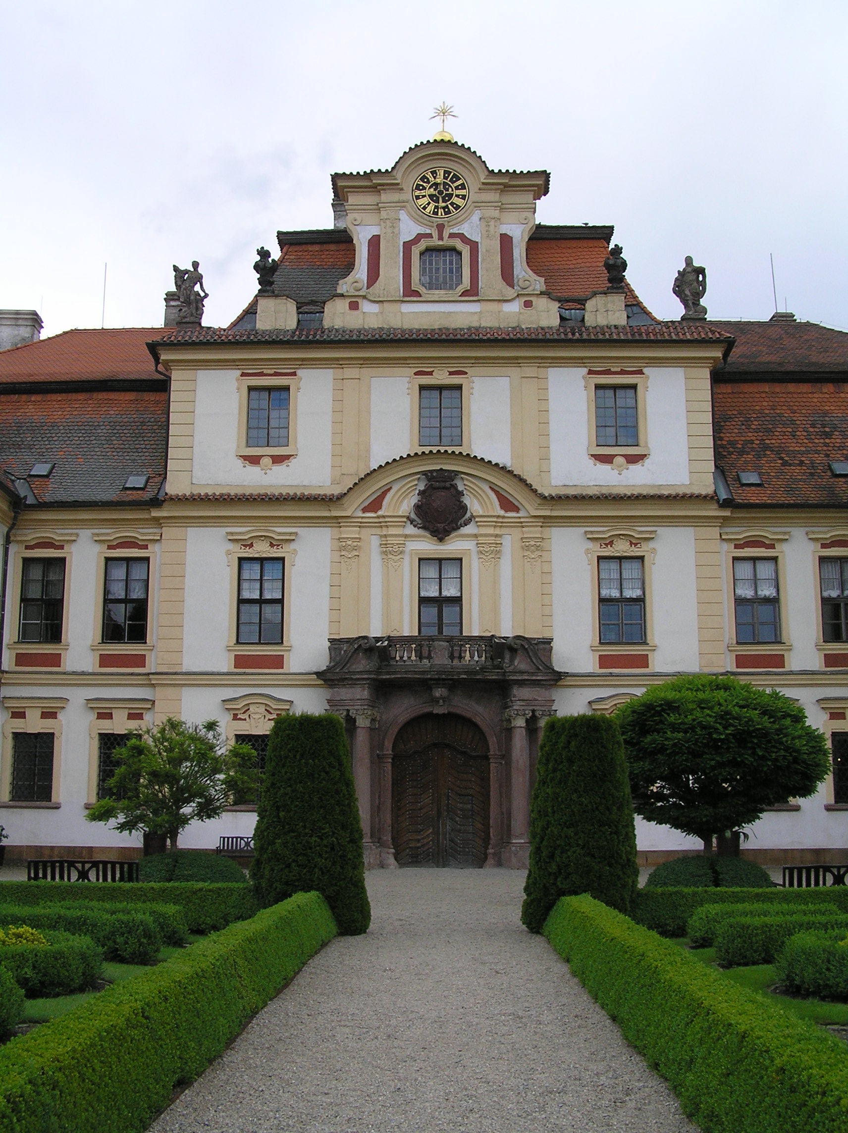 Jméno korporace Jemniště (zámek) Místo Jemniště (Česko) Vznik 1724 Osobnosti Šternberkové (rod) - majitelé zámku Kaňka, František Maxmilián - architekt Reiner, Václav Vavřinec - malíř Scheffler, Felix Anton - malíř Widemann, Lazar - sochař Popis Západně od bývalé staré vodní tvrze na mírném návrší. Jako své sídlo ho nechal postavit nový majitel panství František Adam z Trauttmansdorffu. Stavba zahájena před r. 1724 podle projektu českého barokního stavitele Františka Maxmiliána Kaňky, s nímž spolupracovali další umělci, především malíř Václav Vavřinec Reiner, který se podílel na výzdobě kaple sv. Josefa, která byla dokončena v říjnu 1725. Po požáru v r. 1754 byly interiéry zámku upravovány a z této doby pocházejí také malby hlavního sálu od Felixe Antonína Schefflera. Tehdy byl změněn průčelní štít, na kterém byl nově umístěn trauttmansdorffský erb a vzhled zámku doplnily sochy Lazara Widmana. Kromě těchto úprav nepoškodily zámek žádné zásadní přestavby. - Jednopatrový půdorysu H, s dvěma obdélnými přístavky po stranách čestného dvora, krytý mansardou s báněmi. Hlavní průčelí je situováno k benešovské cestě. Dominuje mu elegantní štít s balkonem, který zvýrazňuje vstup do zámku. Nižší přízemní budovy po stranách stavby sloužily k hospodářským účelům, jako stáje a kůlny. Napojují se na hlavní zámeckou budovu téměř v pravém úhlu a vytvářejí tzv. čestný dvůr. Zadní průčelí zámku je obráceno do parku. Za F.A.Trauttmansdorffa se jednalo o park francouzský. Často byl využíván k pořádání zahradních slavností a k témuž účelu byly vybudovány i dva zahradní pavilony. Na přelomu 18. a 19. stol. byla barokní zahrada přeměněna v romantický anglický park. Jedinou připomínkou někdejšího francouzského parku je tak úprava čestného dvora a nově založený libosad na pravé straně zámku. - Od r. 1868 zámek vlastní rod Šternberků, s výjimkou let 1943-1945, kdy zde byli Němci a 1945-1995, kdy byl majetkem státu. Současný majitel obývá levé křídlo zámku. Zámeckou expozici tvoří 9 sálů, pokojů a kaple sv. Josefa. Nacházejí se tu i 3 apartmány. Klíč.slova baroko * zámky * majitelé zámku * vodní tvrze * kaple * fresky * sochy * zámecké parky * zámecké zahrady * francouzské zahrady Citace POCHE, Emanuel et al. Umělecké památky Čech--. 1. vyd. Sv. 1, A-J. Praha: Academia, 1977, s. 581-582 . Zámek Jemniště: Historie zámku Jemniště [online]. 2013. [cit. 24.8.2015]. Dostupné z: http://www.jemniste.cz/historie-zamku/. Druh soub. Soubor jmen korporací - regionální památky Odkazy (1) - Soubor jmen korporací (3) - Odborná literatura, mapy (38) - ČLÁNKY (5) - Regionální literatura - knihy Databáze národních autorit NK ČR