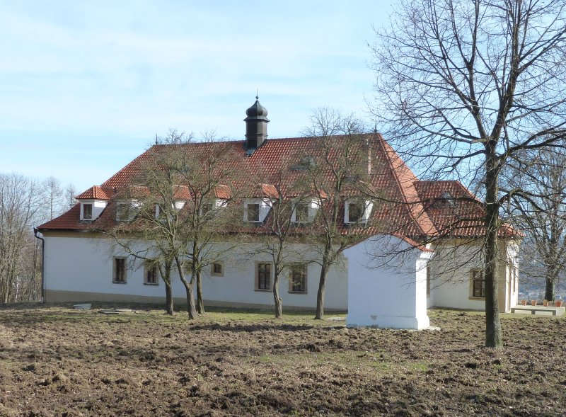 Popis | Klášter je součástí barokního poutního areálu na zalesněném vrchu nad Mníškem pod Brdy. – Na skále nechal Servác Ignác Engel z Engelsflussu v l. 1692-1693 vystavět nejprve kostelík sv. Maří Magdaleny, v r. 1694 byl ke kostelu přistavěn klášter a poustevna. Všechny stavby vedl Kryštof Dientzenhofer a byly určeny pro benediktinské mnichy. R. 1762 zde byl ještě založen špitál (zrušen r. 1785). Od r. 1762 až do druhé světové války působil na Skalce řád františkánů. Mezi superiory vynikl P. Vincenc Lichtblau, známý numismatik evropského formátu. – Skalka se stala známým poutním místem, zejména po dokončení výklenkových kaplí křížové cesty spojující poustevnu s kostelem, kterou dala v l. 1755-1762 zbudovat hraběnka Benedikta Čejková z Olbramovic. – Kostelík i celý areál utrpěly necitlivým poddolováním Skalky (těžba železné rudy a křemenů na výrobu ohnivzdorného dinasu) v 50. l. 20. stol. S postupem těžby se ve zdech staveb začaly objevovat trhliny a v okolním terénu propadliny. Po druhé světové válce byl celý areál určen výnosem ministerstva školství de facto k zániku. Odkrytá budova bez střechy chátrala a část stavebního materiálu byla použita na stavby v Mníšku a okolí. Podařilo se zachránit Brandlovy nástropní fresky včetně slavné Maří Magdaleny, které byly umístěny do kostela sv. Václava a deponovat mobiliář. Po ukončení těžby v r. 1967 došlo postupně ke stabilizaci horninového masívu a mohlo se přistoupit k obnově celého areálu. Počátkem 80. l. 20. stol. byly zahájeny restaurátorské práce v kostelíku sv. Maří Magdaleny a postupně obnoveny kapličky křížové cesty. – Klášter byl rekonstruován od 90. l. 20. stol., byl zastřešen, osazen okny, na stěnách a stropech místností byla nově provedena štuková výzdoba (podle otištěných fotografií a zaměření prof. Oldřicha Stefana a za účasti Ing. arch. Hyzlera z Mníšku), na záchraně fragmentů z původní malířské výzdoby pracoval restaurátor Zdeněk Novotný. – V areálu se každoročně koná mše svatá a následně Skalecká pouť.