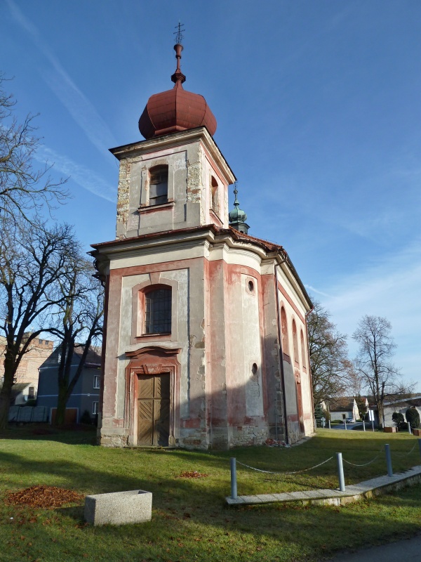 Na mírném návrší uprostřed návsi. - Datum založení není známé. U kostela stával patrně hřbitov obestavěný zdí, v níž byly tři vchody. Na východní straně kostela stávala kostnice. Barokně kostel přestavěn v první polovině 18. stol. podle návrhu architekta Františka Ignáce Préea (?), upravován okolo r. 1840. - Barokní, jednolodní, obdélný, s užším čtvercovým presbytářem, čtvercovou sakristií po jeho severní straně a s hranolovou věží v západním průčelí. Hlavní průčelí s rizalitem členěno ornamentálními pásy, obdélným portálem a oknem se segmentovým záklenkem. Rizalit vrcholí věží, také členěnou ornamentálními pásy a obdélnými okny. Presbytář sklenut plackou, loď valenou klenbou s lunetami. - Zařízení: pseudogotické, z 19. stol. Na hlavním oltáři obraz sv. Mikuláše od L. J. Bernarda z r. 1871, na dvou bočních oltářích obrazy sv. Terezie a sv. Alžběty od E. Lauffera z r. 1872. - Ve věži kostela dva zvony.