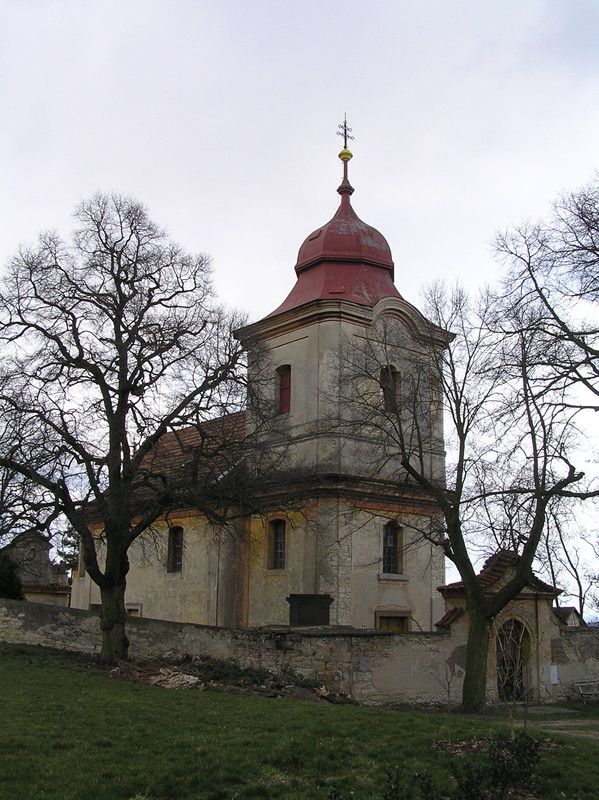 Ve východní části návsi. - Původně románská rotunda ze 13. stol., k ní v 18. stol. přistavěna loď a průčelní věž. - Obdélná plochostropá loď, presbytář se sakristií tvoří bývalá románská plochostropá rotunda. Průčelí zabírá hranolová věž s lizénovými rámci, obdélným portálem a obdélnými okny s odsazeným polokruhem, báň cibulovitá. - Zařízení: hlavní oltář rokokový panelový (z r. 1779), s obrazem sv. Jiří od J. Heřmana (z r. 1890); boční ranně barokní oltář Panny Marie. - Okolo kostela hřbitov.