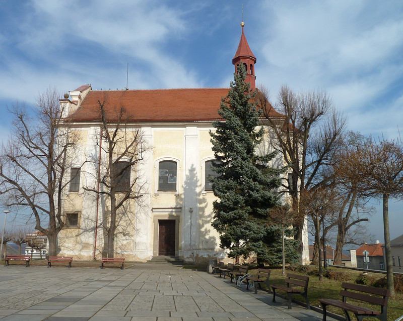 | Popis | Bývalý klášterní kostel původně řeholního řádu theatinů později františkánů. Kostel nechal postavit majitel zdejšího panství Bernard Ignác Martinic. Stavitelem byl pravděpodobně Carlo Lurago. První mši sloužil hořovický děkan P. Pecháček. Po odchodu řádu theatinů v majetku františkánů. - Jednolodní, obdélný, s půlkruhově ukončeným presbytářem, se sanktusovou věžičkou na střeše. Vnější stěny členěny vpadlými poli a plochými pilastry, průčelí má v ose portál. Loď sklenuta valeně s lunetami, západní kruchta na dvou pilířích na plochém stropu sklenutá valeně s lunetami, presbytář sklenut valeně s lunetami a lunetovým závěrem. Po stranách presbytáře oratoře, otevřené arkádami, sklenuty valeně. Na klenbě nástěnné malby. Kamenné zábradlí, oddělující presbytář, s kovovou soudobou brankou. - Zařízení: hlavní oltář barokní, s obrazem Panny Marie s 14 pomocníky z r. 1725. V serní straně lodi barokní kazatelna, oltář sv. Aloise, barokní varhanní skříň z pol. 18. stol. a varhany z r. 1914. V jižní straně lodi pod kruchtou kaplička sv. Antonína, vymezená dřevěnými řezanými brankami, vsazenými mezi zeď a pilíř. V ní rámový oltář sv. Antonína Padovského se soudobým obrazem. - U kostela kaple, zvaná Loreta z l. 1685-1690.