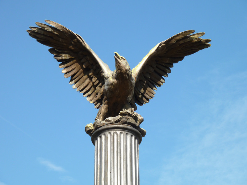 PopisNa Náměstí Míru. – Litinový sloup s figurou orla a znakem Království českého byl pořízen r. 1891 pro Jubilejní zemskou výstavu v Praze.