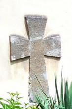 Kamenný kříž byl původně na střeše kostela sv. Kateřiny. Při opravě kostela v r. 1929 byl z jeho střechy odstraněn a zazděn do zdi hřbitůvku (vlevo od vchodu do kostela). - Rozměry: 205 x 71 cm. - Pravidelný maltézský kříž vezděný celou plochou do zdi nad balvany neznámého určení.