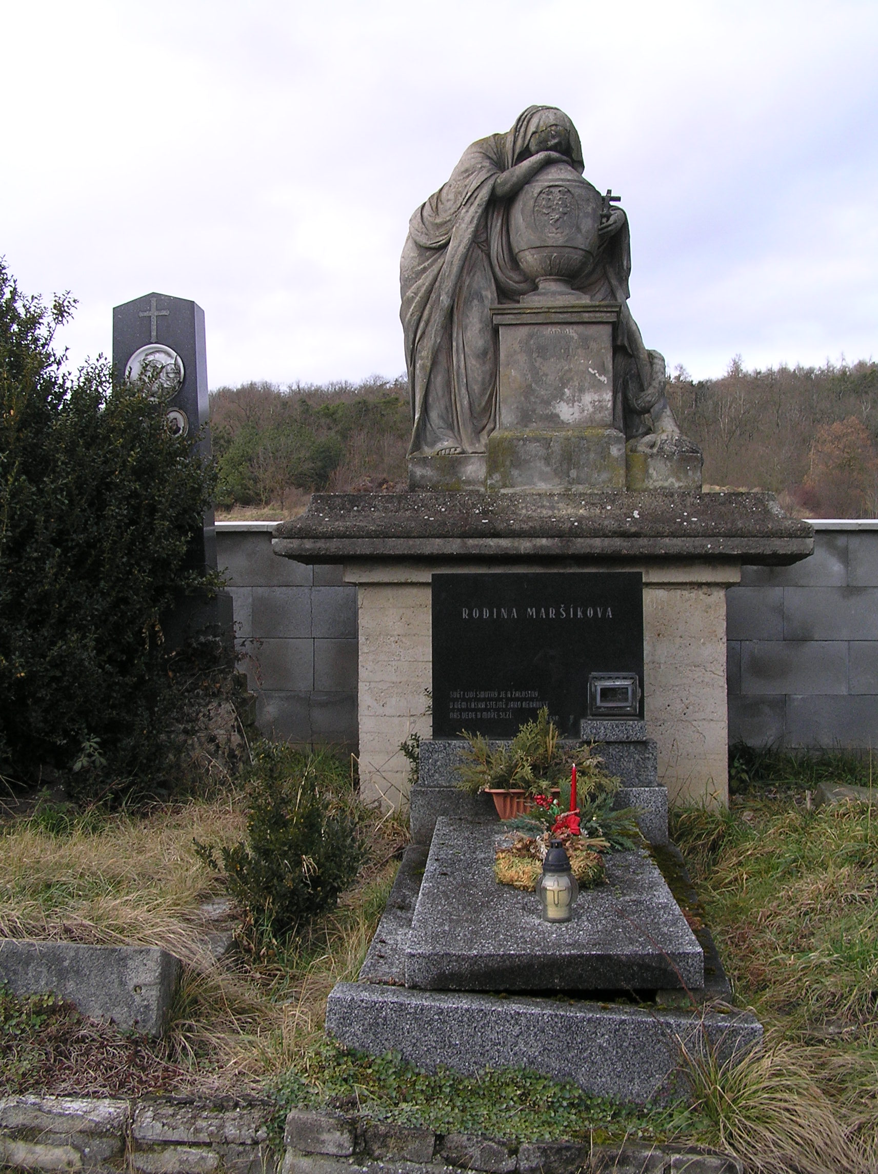 Původní hřbitov kolem kostela zrušen nařízením Josefa II. Nový, dnešní hřbitov postaven za hraběnky Gertrudy Netolické na konci 18. stol. Za hraběte Jeronýma Lütsova r. 1825 rozšířen od márnice na západní stranu. - Na hřbitově dva pomníky z dílny sochaře I. F. Platzera (hrobka Vratislavů z Mitrovic a hrob hraběnky Valburgy Netolické z r. 1793) a dva empírové náhrobky. Na severovýchodním okraji hřbitova pomník Mistra Jana Husa z r. 1915, na východním okraji mohyla ruských vojáků z r. 1813. - Na hřbitově též novogotická hrobka rodiny Jedličků, kterou zde nechal postavit JUDr. Adolf Jedlička (zakladatel Jedličkova ústavu) a kde byl po své smrti r. 1894 pohřben.