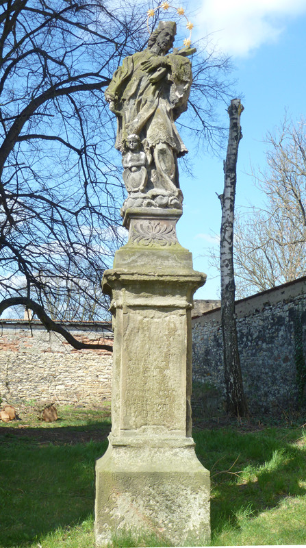 Dnes stojí mezi kostelem sv. Petra a Pavla a farou. Původně stála na Svatojánském náměstí, kde ji nahradil v r. 1938 pomník T.G. Masaryka. - Barokní, pískovcová, na podstavci původně ozdobeném nápisy (dnes nejdou přečíst). - Naposled restaurována v r. 1993 Jiřím a Marcelou Kačerovými.
