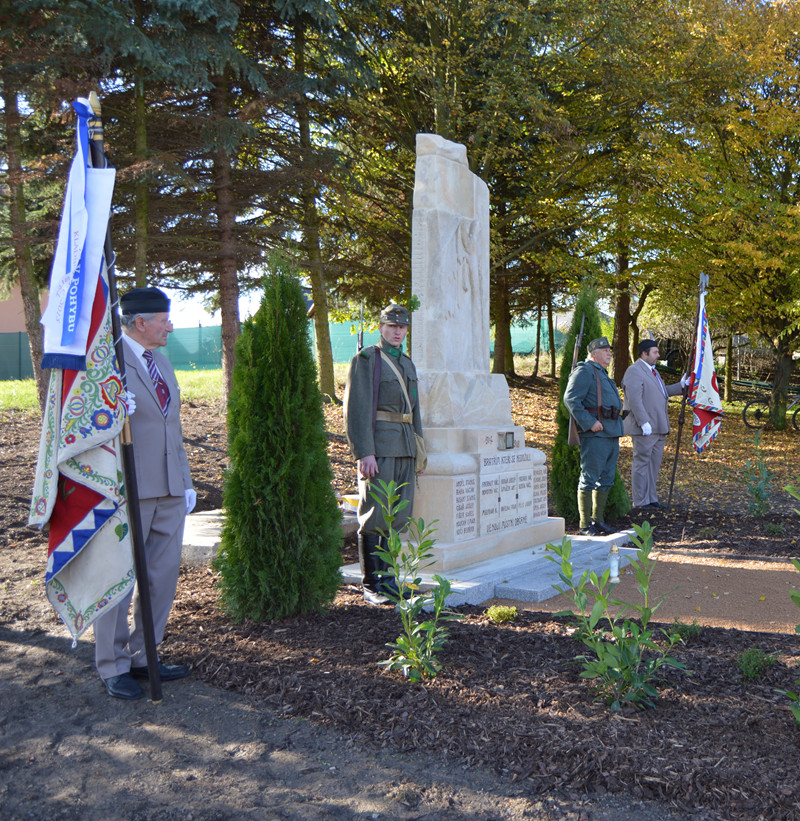 V parku nad zdravotním střediskem. Pomník s třiadvaceti jmény padlých občanů v 1. sv. válce vznikl v r. (?). Původně stál v parku u klempířství Chýský, poté byl přemístěn ke zdravotnímu středisku. V r. 2008 byl z důvodů výstavby nových rodinných domů přemístěn ke zdejšímu hřbitovu, kde postupně zarůstal plevelem a chátral. Nově byl renovován a umístěn do parčíku. Slavnostního aktu jeho odhalení se mj. zúčastnili v dobových uniformách příslušníci 8. zeměbraneckého pěšího pluku z Prahy a skauti a členové Sokola.