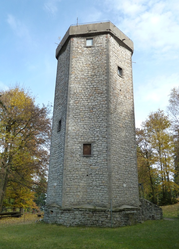 Na Studeném vrchu (660) v severovýchodní části Brd – Hřebenů. Na katastru Dobříše, 3,5 km pěšky jihozápadně od obce Malý Chlumec, části obce Velký Chlumec. Na začátku 20. let 20. stol. zde byla vybudována třípatrová triangulační věž, která byla v l. 1940-1942 nahrazena zděnou měřičskou věží. Během války ji využívala protiletadlová hlídka. Geodetickým účelům sloužila až do konce 20. stol. Díky iniciativě Sdružení za ekologický rozvoj krajiny (SERK) a spolku Turisté severních svahů Brd (TSSB) byla ke konci r. 2004 věž opravena a následně zpřístupněna pro turisty v podobě rozhledny. – 17, 5 m kamenná sedmiboká šestipatrová věž s vyhlídkovou plošinou ve výšce 16,5 m, na ochoz vede 81 dřevěných schodů. Věž je v pronájmu obce Velký Chlumec, majitelem pozemků je rod Colloredo-Mansfeldů. – Výhled je na Šumavu, Krušné hory, České středohoří a Sněžku. Je otevřena od dubna do října (soboty, neděle a státní svátky). Můžete se zde i občerstvit výbornou opečenou klobásou na ohni.
