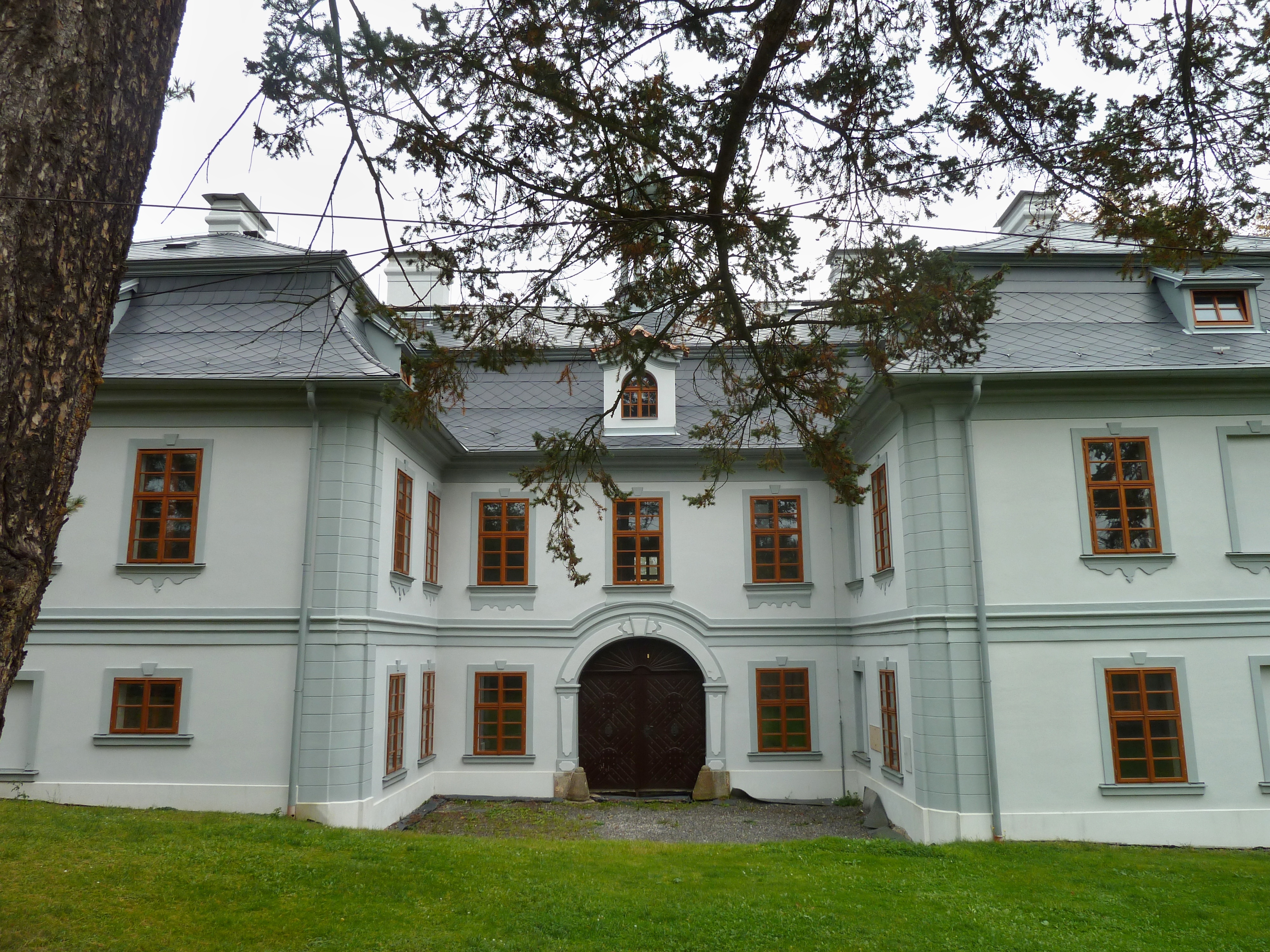 Severozápadně od návsi. Postavený v l. 1751-1764 v pozdně barokním slohu pro tehdejšího majitele Františka Boryně ze Lhoty na místě staršího panského sídla. – Trojkřídlý, patrový, s mansardovou střechou, členěný pásy rustiky v nárožích a obdélnými okny. Zahradní průčelí s trojosým středovým rizalitem s trojúhelníkovým ukončením a s pavilónovou nástavbou s polokruhovým štítem. Přízemí sklenuto plackami a valenou klenbou s lunetami. Nad dveřmi rokokové řezby, na vstupních dveřích rokokové kování. – Po roce 1945 byl zámek několikrát upravován. Donedávna byl v zámku domov důchodců, dnes je soukromým vlastnictvím a je nepřístupný. Nový majitel zámek opravil. Z někdejšího zámeckého parku zůstala jen část.