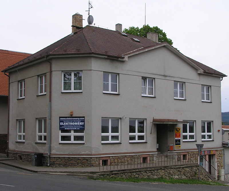 DescriptonPošta byla založena v únoru 1869. První úřadovna byla krátce v domě čp. 11 na náměstí. Později až do r. 1930 sídlila pošta v přízemí budovy staré radnice v dnešní Dubějovické ulici čp. 51. Po vybudování filiálky Občanské záložny v r. 1930 byla pošta přemístěna do nynější budovy čp. 143 na náměstí, kde sídlí dosud. - Prvním poštmistrem byl Ferdinand Křížek.