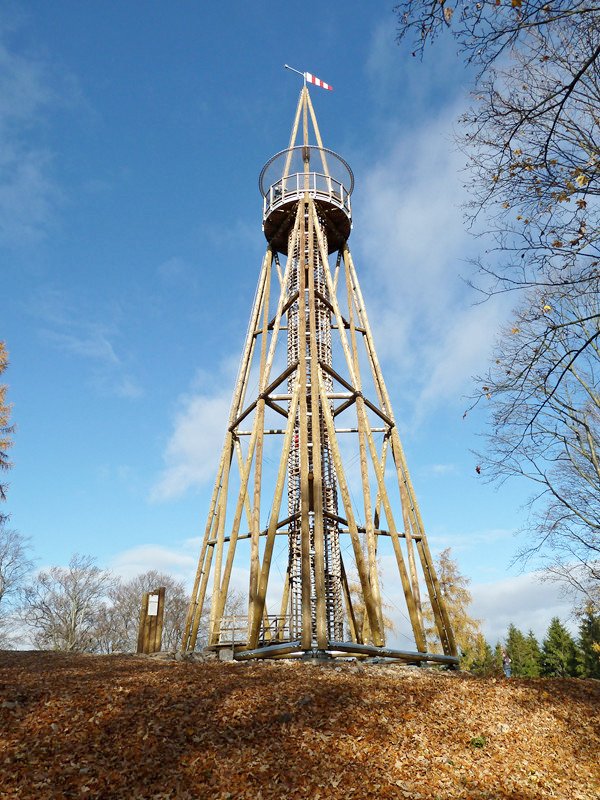 Na Krušné hoře (609 m) nedaleko Hudlic. Již téměř před sto lety na tomto místě stála triangulační věž. Rozhledna vznikla z iniciativy místního rodáka Radka Oliče. Projekt byl vypracován již v r. 2006 v ateliéru Martina Rajniše - Huť architektury. K vlastní realizaci došlo až za 8 let v r. 2014, kdy se podařilo získat dotace z Regionálního operačního programu. - Rozhledna ve tvaru trojbokého jehlanu s kulatým dubovým schodištěm uprostřed a korouhví na špici měří 33 metrů a na její vrchol vede 98 schodů. Vyhlídková podesta je ve výšce 21 m. Návštěvníci mají výhled na Krušné Hory nebo Brdy, ale také na Krkonoše, Ještěd nebo Šumavu. Okolo rozhledny vede nová naučná stezka Krušná hora - Hudlice.