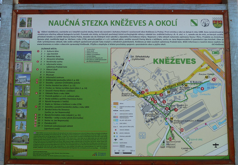DescriptonNaučná stezka seznamuje s historií a současností obce Kněževse u Prahy. Je budována od r. 2013. V současné době je na trase umístěno 5 orientačních tabulí. Stezka je rozdělena na 3 vycházkové okruhy - relaxační, historický a sportovní. Postupně se stezka bude rozšiřovat o dílčí stanoviště, popisky či další orientační cedule.